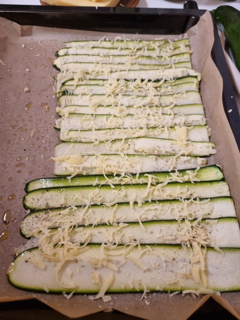 Bei 160 °C Umluft ca. 15–20 Minuten backen, bis die Zucchini weich sind und der Käse leicht bräunt.