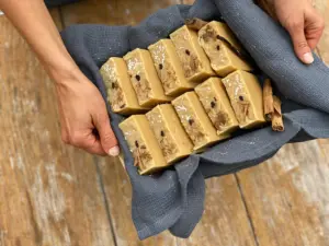 ✅ Am nächsten Tag deine Seife schneiden und 4 Wochen bei dir reifen lassen